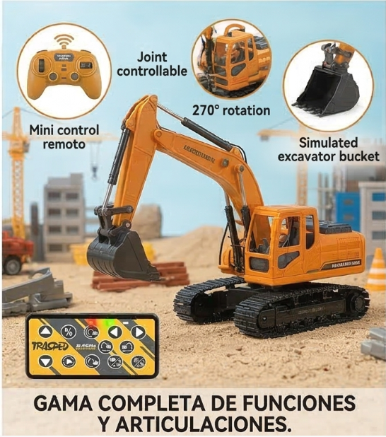 ¡Lleva la obra a tu casa con la nueva línea de Mini Vehículos RC. Diseñados a una increíble escala 1:64, estos vehículos de construcción combinan detalles ultra realistas con la máxima diversión. Construidos con una resistente mezcla de metal y plástico, son perfectos tanto para coleccionistas como para quienes buscan un control remoto dinámico y preciso en espacios reducidos.