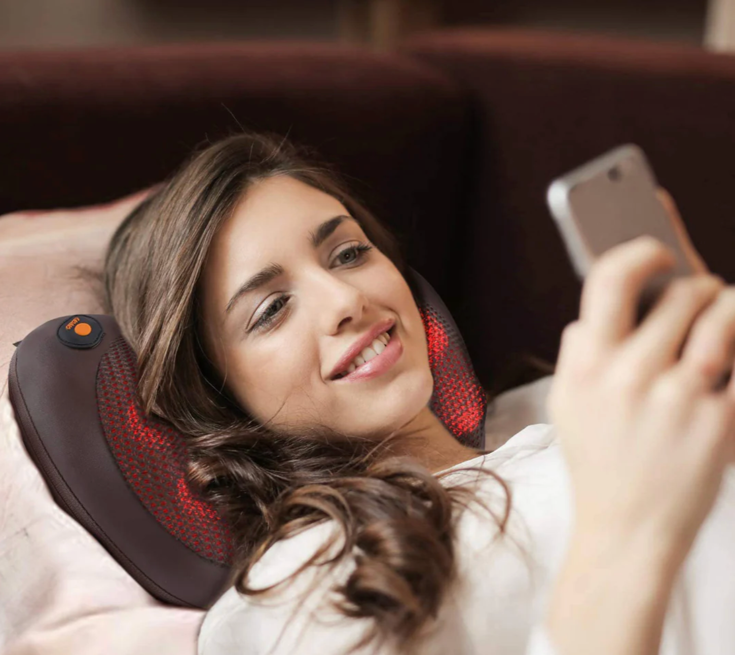 - Coloque la almohada de masaje contra su cuello, espalda, cintura, muslos o pantorrillas .