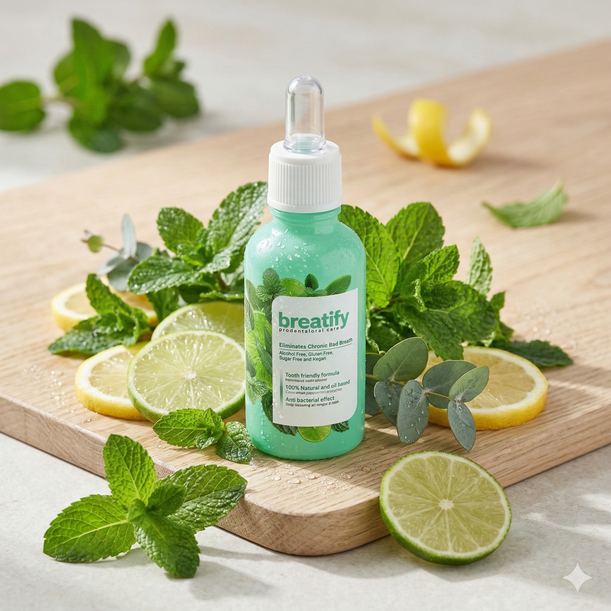 Con BREATIFY, no importa lo que hayas comido, tu aliento siempre se sentirá fresco. 3 gotas y listo, sin alcohol ni azúcares, para un aliento limpio que te da la confianza para hablar sin límites.